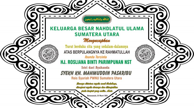 Baca SelengkapnyaHAL : HIMBAUAN Sehubungan dengan Wafatnya isteri Bapak Syekh KH Mahmuddin Pasaribu Rois Syuriah PWNU Sumatera Utara, PWNU Sumatera Utara